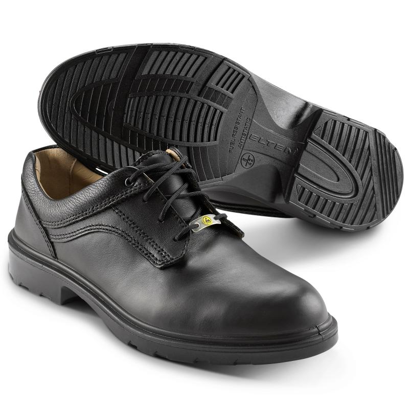 Snygg, slitstark och bekväm arbetssko av läder till jobb och fritid. Innerfoder av slitstarkt läder som andas. ESD-godkänd och försedd med tåhätta.