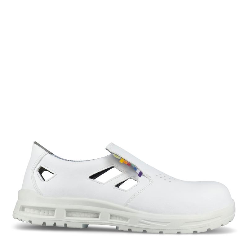 Lätt och bekväm skyddssandal av slitstark och snabbtorkande mikrofiber som är enkel att rengöra. Sulkärnan av INFINERGY®-material absorberar stötar och skickar tillbaka energin till fötterna, så att varje steg laddas med ny, lättillgänglig och snabb energi. Halkhämmande och stötabsorberande yttersula av PU. Sandalen har ett hudvänligt och svettabsorberande innerfoder och stötabsorberande inläggssula i material som andas. ESD-godkänd. Läder- och metallfri.