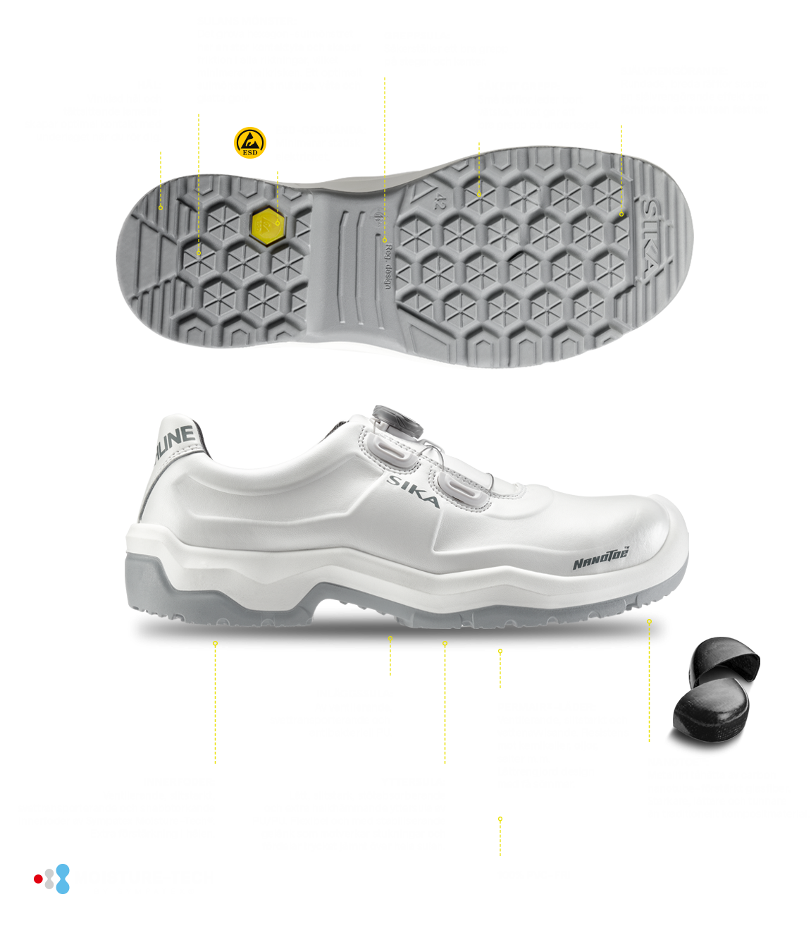 Bakom den enkla designen döljer sig en innovativ teknik och beprövad material som tillsammans ger en av marknadens bästa arbetsskor för kök, storkök, livsmedels- & läkemedelsindustrin.