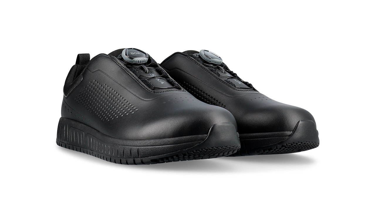 Sneakersliknande arbetsskor med originalvarianten av BOA® Fit System. Skon har en slät ovandel i mikrofiber som gör den särskilt motståndskraftig mot smuts och samtidigt avvisande mot vatten och andra vätskor. Yttersulan med hexagonmönster bidrar till 360° halksäkerhet. Luftbubblor i både mellan- och yttersulan ger särskilt bra stötdämpning.